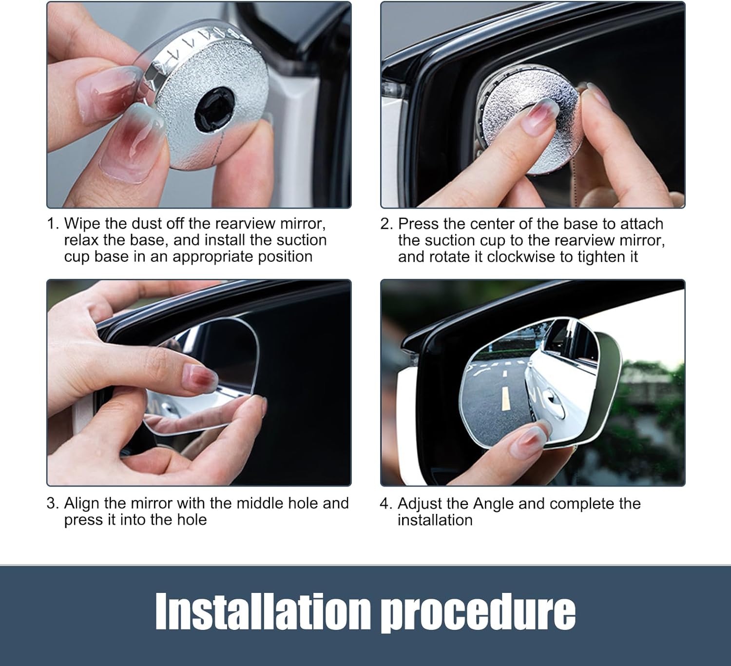 High-quality MaterialsΒ -Β The surface of this car rearview mirror is supported by high-definition materials, which can provide clear vision and is a perfect driving assistance accessory. The car blind spot mirror guarantees easy and sturdy installation and can even withstand car washes.